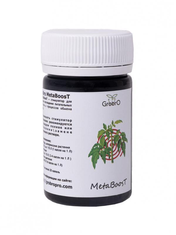 Стимулятор GroBro MetaBoosT 50 мл - Стимулятор метаболизма, позволяющий ускорить поглощение питательных элементов и процессы обмена веществ. Благоприятствует улучшению фотосинтеза, повышает урожайность, увеличивает качество продукции, ускорению созревания и вступления в период плодоношения, делает период цветения более сбалансированным.